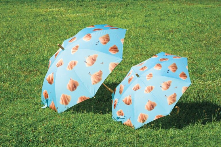 田中達特意挑選代表作「牛角包雲」作雨傘設計概念並重新演繹,30多個香噴噴的牛角包化成雲朵在藍天中漂浮,多個微型人物和動物,包括田中本人在雲中穿插,享受快樂時光。他希望不論雨天或晴天,大人和小朋友攜著雨傘都能被牛角包包圍,美味地度過每一天!其幽默感更延伸到雨傘包裝上,把一般簡單透明膠袋,設計成長法包(Baguette)和紙袋,玩味十足!