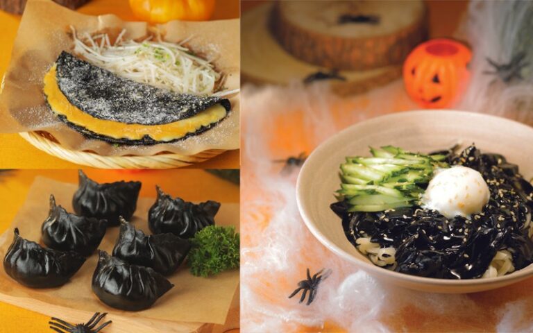 套餐可加配「黑巫師芝士泡菜煎餅」,選用自家製泡菜及竹炭作餅漿主要材料,煎餅賣相非常應節。另一款應節食品「脆怪餃子」,同樣採用韓國天然竹炭製成餃子皮,再用上濟洲黑毛豬肉作餡料,配搭菠蘿酸甜汁,特別惹味。