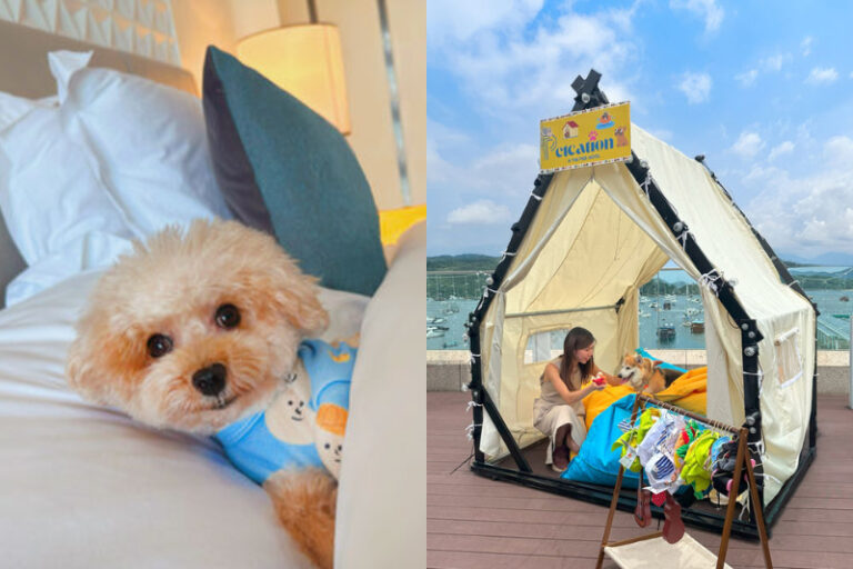 香港維港凱悅尚萃酒店有提供Dogcation(毛孩放電假期住宿計劃),只要使用Dogcation(愛犬度假遊住宿)優惠精選,可免費攜帶第一隻狗。攜帶第二隻狗的價格為每晚HK$299 + 10%,每隻寵物重量限制30公斤,每間房間可帶寵物上限為2隻。