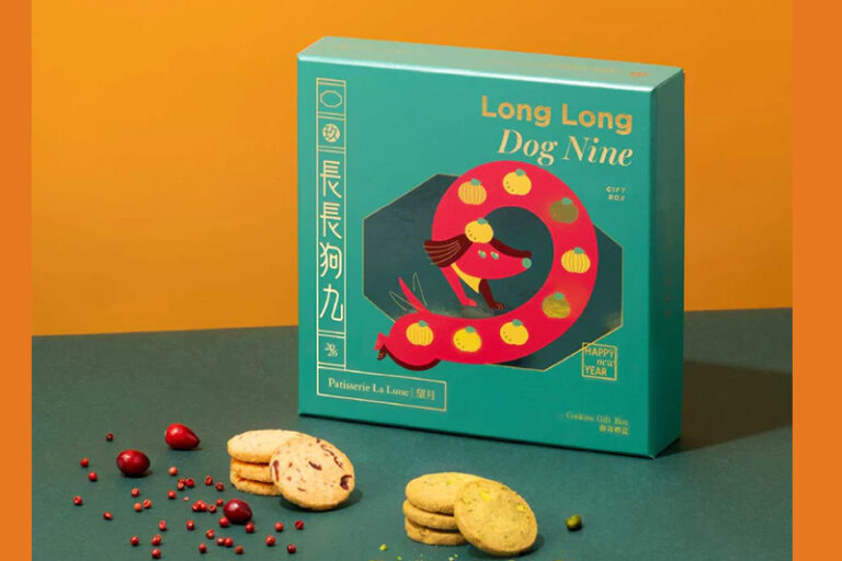 以活潑長身狗狗作包裝,象徵關係長長久久。禮盒盛載開心果曲奇(9件)及紅莓曲奇(9件),天然堅果及莓果味道突出,同時散發濃郁牛油香氣,口感香脆鬆化,滿足味蕾多層次的追求。