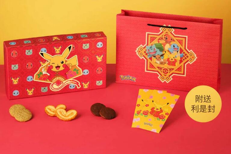 盒上讓人驚喜的Pokémon,換上喜慶紅色唐裝,從中式摺扇鑽出來跟大家拜年。盒內的經典蝴蝶酥及伯爵、伯爵曲奇、朱古力曲奇味道俱全,讓人盡嚐三款截然不同的口味,加上隨禮盒附送喜氣洋洋的紙袋,及一套6個Pokémon主題利是封,試問Pokémon迷怎能錯過!
