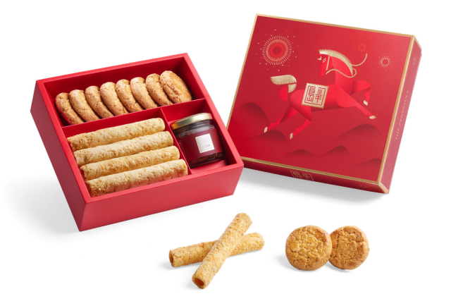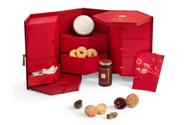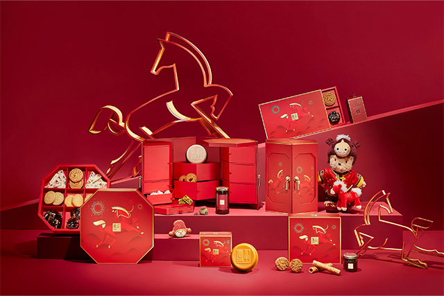 半島精品店每年推出的新春禮盒都有總會有驚喜!今年的「駿馳迎福 喜迎豐年」新春系列,由禮物籃到精緻手工賀年美點,不但精緻更是美味。多款賀年糖果及中式美點,以精美駿馬圖案點綴,招來好意頭。