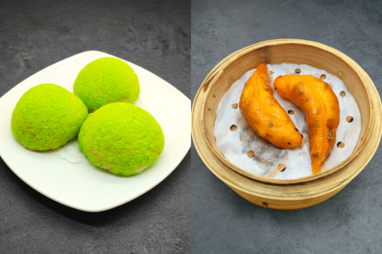 酥皮蜜瓜包 HK$38;酸菜魚餃 HK$38(早市優惠 HK$28)