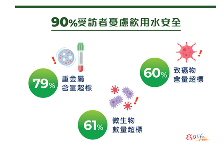 調查結果顯示,高達95%的受訪者知悉近期發生的飲用水安全事件,90%對飲用水安全表示憂慮,80%擔心水質問題會對健康造成負面影響。在有子女的受訪者當中,這種憂慮更為明顯,84%的父母擔心飲用水安全問題會令子女面臨健康風險。