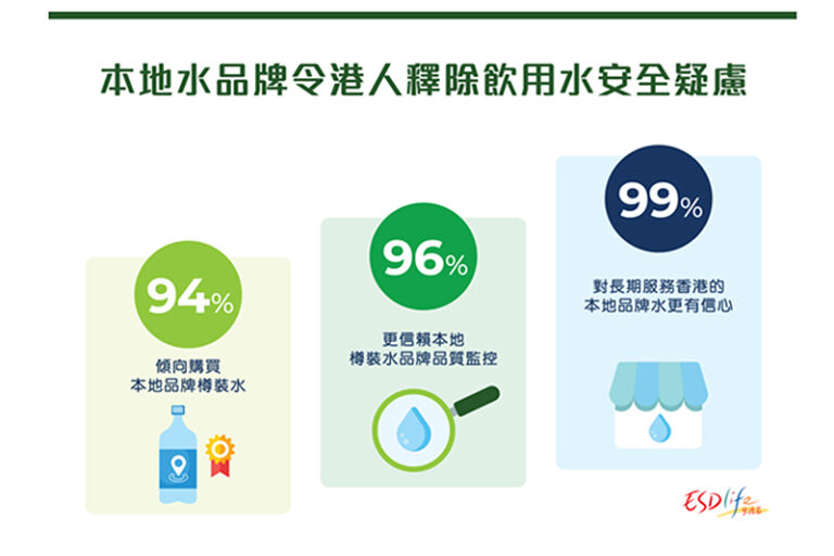 市面上樽裝水品牌眾多,水的種類亦五花八門,究竟港人如何選擇?調查發現港人對本地樽裝水品牌展現出極高的信心。94%的受訪者在購買樽裝水時傾向選擇本地品牌,96%對本地品牌的品質監控更有信心。更值得注意的是,99%的受訪者認為長期服務香港的本地品牌能進一步提升他們的信心;98%受訪者更願意為值得信賴的樽裝水品牌支付更高價格,由此可見本地樽裝水品牌憑藉長期服務、嚴格監控及可靠口碑,成功獲得消費者的信任,由單純解渴需求,提升至對品質與安全的全面追求。