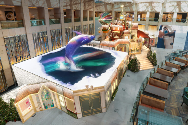 今年聖誕,置地廣塲將中庭打造成法式城堡風格的湖畔小鎮,帶來全港最大互動祈願湖「光之湖」Lake Lumière。小朋友可投入魔法錢幣,讓願望在12米巨型光影湖面綻放,親眼見證夢想化為璀璨祝福。現場更有高達11米的燈塔與雪景,讓家庭拍下最美節日合照。