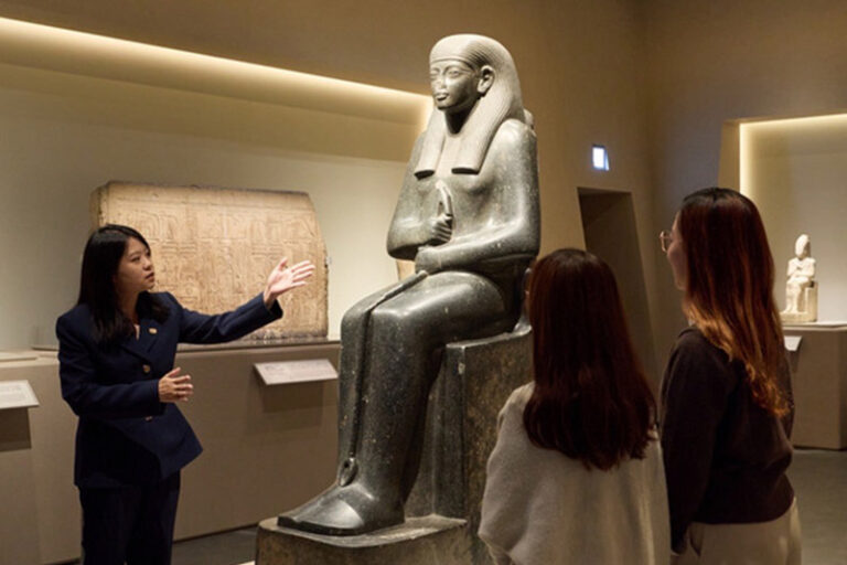不少家長擔心博物館展覽內容過於嚴肅,小朋友未必能完全投入。但這次埃及展的設計相當友善,未進入展廳前,地下大堂及二樓中庭已展出多尊巨型石像,為整個參觀體驗做好「預熱」,特別適合第一次接觸歷史展覽的人士。