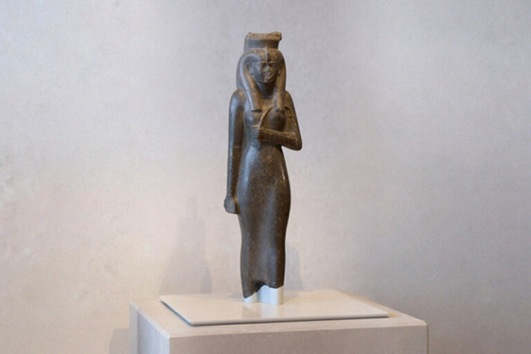 這尊石像於1980年代出土,是考古學家首次發現並確認的伊烏尼特雕像。伊烏尼特是古埃及重要古城底比斯的一位地方女神,被視為戰神蒙圖的配偶。新王國時期,她被納入底比斯卡納克神廟的眾神體系。
