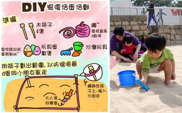 坊間也有團體自組復活節掘蛋活動,例如小編找到由Happy Kids Family幸福小孩快樂窩在清水灣舉辦的親子掘蛋,費用全免,只需自備挖掘及裝蛋工具就可以!適合小資但又希望小朋友可以參與到群體活動的家庭。