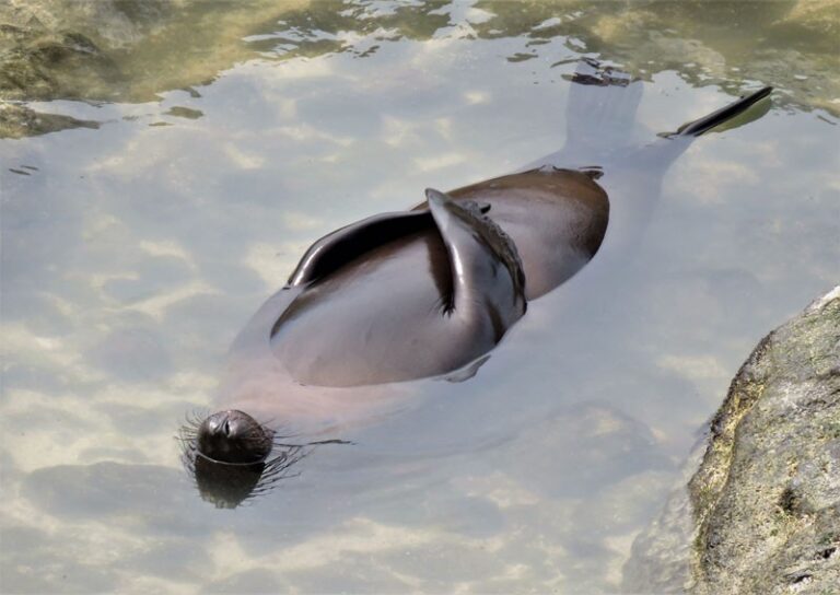 兩隻南象鼻海豹像是以奇怪的表情溝通著。