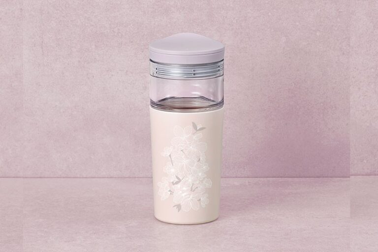系列推出12oz 櫻花見頃玻璃杯,在透明玻璃裡刻劃出細膩的花紋,配上金色手把裝飾;粉紫色的10oz 春櫻花瓣心形咖啡杯碟組合將心形花瓣的咖啡杯拼上象徵荷葉的杯碟;而18oz 櫻花見頃不鏽鋼凍杯的淺紫色杯身繪上如飄散的金色花瓣,讓您的星巴克咖啡時光載滿春日滋味。
