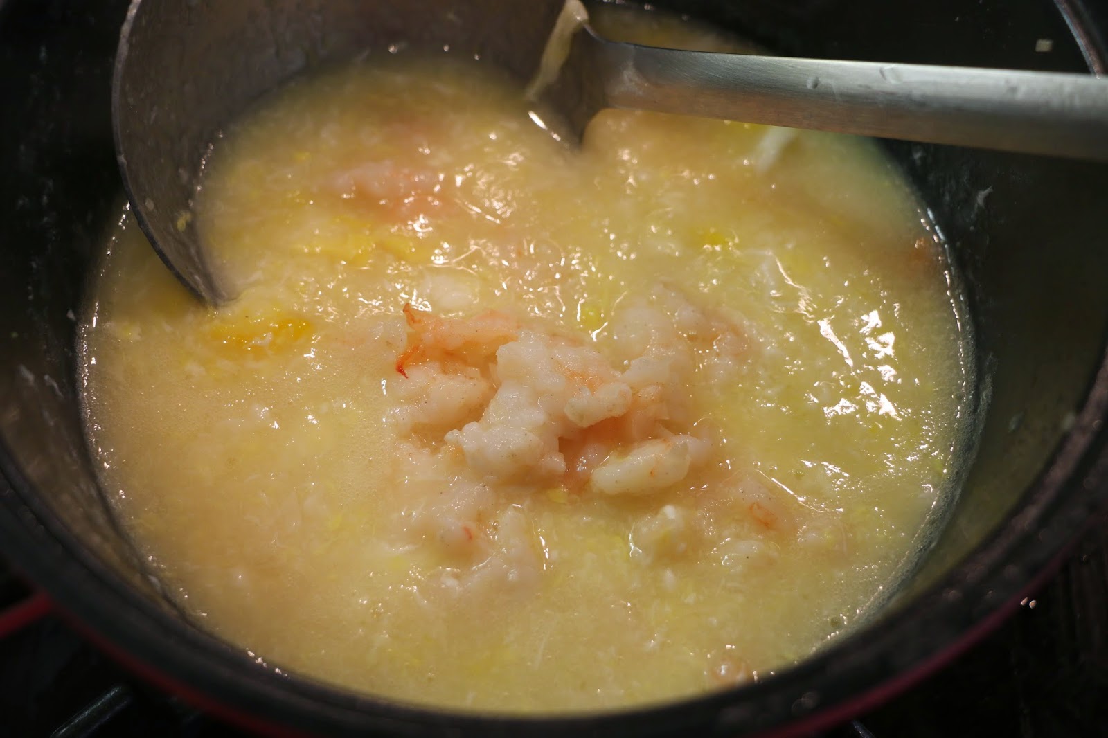 7. 原鍋加入清雞湯,把蒸好的豆腐汁也一同加進去(也可以不加)。