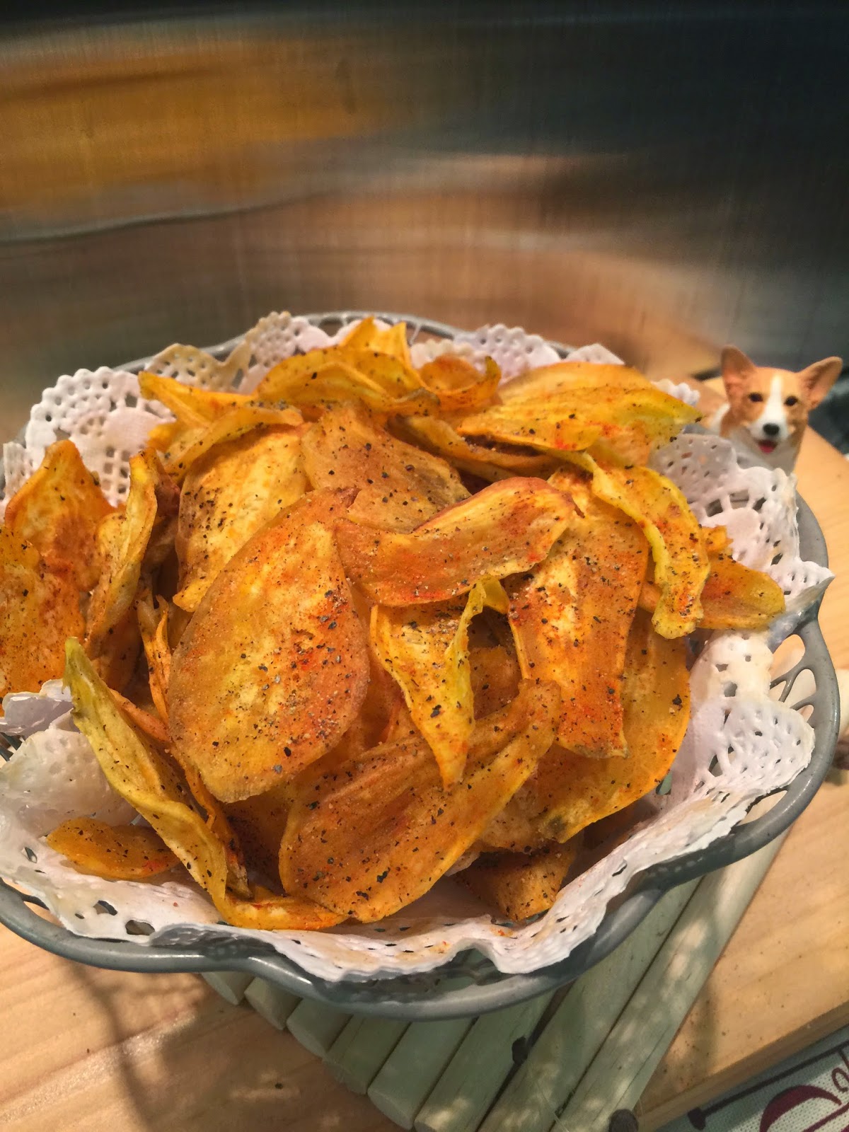 香脆番薯片By Fen香脆番薯片編輯: By Fen預備---分鐘烹調1分鐘總共1分鐘難度1 / 3份量3-4人簡介自製番薯片天然又健康,做法也非常簡單,烤好後的薯片香脆可口,當作零食吃也不厭。材料材料:日本黃番薯 1包調味料:鹽、黑胡椒粉、辣椒粉 少許做法1做法: 1. 番薯刨皮洗淨,切約1-2mm厚的薄片。(切得越薄,烤出來的番薯片就會越脆。)2. 烤盤鋪上鋁箔紙,噴上一層薄油,把番薯片鋪在烤盤上(番薯片盡量不要疊在一起)。3. 再在番薯片上噴一層油,然後撒上少許鹽、胡椒粉和辣椒粉。(調味粉可以按自己口味來添加,不加也可以。)4. 然後放入已預熱的烤箱,先以160度烤約20分鐘至稍微卷曲,反轉另一面再撒上少許調味料,繼續烤約15-20分鐘至乾脆。(番薯片的厚度、水份和烤箱的溫差會有不同,所以烤制的時間可根據實際情況來作相應的調整。)若番薯片放了太久變軟了,可放回烤箱再烘烤至脆。 https://www.facebook.com/pages/Fens/436468303135136小貼士若番薯片放了太久變軟了,可放回烤箱再烘烤至脆。小食烤焗中式親子朋友派對焗爐應節食品朋友聚會相關食譜叉燒酥By Clothes 時間: 3 小時 | 份量: 3-4人聖誕布朗尼(朱古力味/綠茶味)By 姊妹食譜 時間: 1 小時 | 份量: 8-10人耶誕薑餅人曲奇By MrsP'sKitchen 時間: 37 分鐘 | 份量: 5-7人