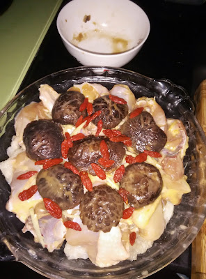 杞子綿花雞By angelma21杞子綿花雞編輯: By angelma21PreviousNext預備---分鐘烹調30分鐘總共30分鐘難度1 / 3份量3-4人簡介在家做的綿花雞無味精又可隨自己喜歡加入,今次我又加咗杞子,簡單蒸出美味餸材料材料: 雞1只, 魚肚5塊, 冬菇8-10只, 杞子1湯匙, 薑絲1湯匙魚肚出水: 薑同蔥醃雞: 鹽半茶匙, 薑汁1湯匙, 酒1湯匙, 豉油1湯匙, 糖1茶匙, 生粉1湯匙醃冬菇: 蠔油1湯匙, 糖半茶匙, 水1湯匙, 生粉1茶匙做法1先將冬菇浸軟, 杞子洗淨 薑,蔥同水一齊煲滾 水滾後加入魚肚按壓等魚肚吸水後熄火 蓋上蓋焗5-10分鐘等魚肚軟身洗淨切細件冬菇浸軟後洗淨加入醃料撈勻撈勻後放一邊備用雞洗淨切細件(可叫雞檔代斬細)先加薑汁撈勻再加入其它醃料, 除生粉外撈勻後才加入生粉再撈將魚肚先放碟底將雞平均放入, 盡量不要重疊將薑絲平均pop在雞面再將冬菇排好最後加入杞子水滾後放入大火蒸18-20分鐘蓋上蓋大火蒸18-20分鐘蒸好後加入蔥多焗5分鐘就食得小貼士魚肚出水後要洗淨同搾乾水, 蒸時才吸收雞汁的味 冬菇浸軟後洗乾淨同搾乾水才加入醃料才入味 蒸煮時間因每家的爐溫都有不同, 再自行調節主菜蒸煮中式肉類海鮮相關食譜無水蒸海鮮配泰式點醬By Hoiyan00 時間: 25 分鐘 | 份量: 3-4人檸檬蒸烏頭By Hoiyan00 時間: 18 分鐘 | 份量: 3-4人蒸海鮮鍋粥(小熊自家版)By Seikobear 時間: 2 小時 | 份量: 3-4人