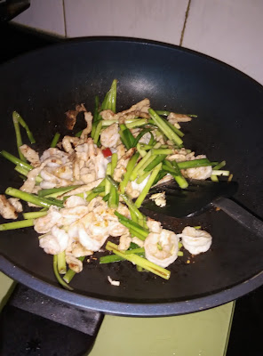 炒勻後加入蛋,芽菜同餘下的韭菜炒勻試味