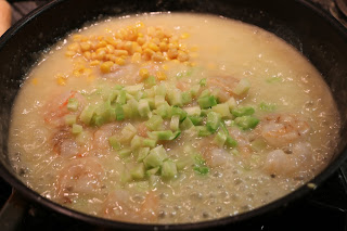 10. 接著,加入已清洗好的蝦仁煮至蝦肉變色。