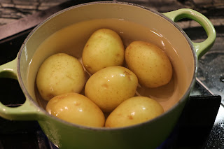 1. 馬鈴薯放入足量的水中煮至熟透(筷子可輕易插入即表示可以。)