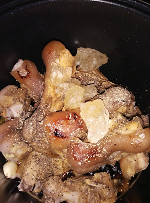 用電飯煲煮黑椒豬手By angelma21用電飯煲煮黑椒豬手編輯: By angelma21預備---分鐘烹調1小時總共1小時難度1 / 3份量3-4人簡介想食軟淋豬手可以利用電飯煲簡單放入材料按個制唔洗睇火,一個鐘就食得材料材料:豬手2只,薑1大件,蒜1只,洋蔥1個調味:酒2湯匙,豉油2杯,水2杯,冰糖半碗,黑椒粉3湯匙 做法1 先將豬手出水 豬手滾起多幾分鐘出咗啲汚物 洗淨去毛 放入飯煲煎煎 煎好加入薑蒜 灑入酒加入豉油 冰糖,水同黑椒 大約煮30分鐘左右 筷子容易插入就熟洋蔥去衣洗淨切條 先爆香洋蔥後加回豬手 食時再蒸熱小貼士可以喺飯煲炆淋豬手後食時加入炒香洋蔥再蒸熱更軟淋主菜蒸煮中式肉類相關食譜【Cooking TV】馬蹄蒸肉餅By 靚太Club 時間: 40 分鐘 | 份量: 3-4人【Cooking TV】芝味椰菜飯By 靚太Club 時間: 30 分鐘 | 份量: 2人蟲草花杞子蒸滑雞By Littlesoina 時間: 15 分鐘 | 份量: 3-4人