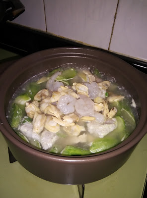 絲瓜海鮮湯By angelma21絲瓜海鮮湯編輯: By angelma21預備---分鐘烹調20分鐘總共20分鐘難度1 / 3份量3-4人簡介絲瓜唔一定炒用來滾湯都好好味,加咗海鮮就更鮮甜材料 材料:絲瓜2條,魚肉4两,咸肉1湯匙,蝦仁8~10只,蜆肉半包,薑幾片做法1先將蝦同蜆肉用鹽水浸浸絲瓜去骨洗淨切細件先喺煲爆香薑同肉 薑有香味就加入絲瓜 炒勻 加暖水差唔多浸過瓜 滾起後 加入魚肉 滾起後加入蝦仁同蜆肉 再滾起加鹽糖試味就飲得小貼士絲瓜炒炒就會去咗臭青味,海鮮最後加就唔會過熟湯煲中式肉類海鮮蔬菜相關食譜一鮑二吃 之 鮑魚雞湯 + 蠔油鮑魚燴生菜By ❤Floreta❤ 時間: 3 小時 | 份量: 2人LC主理 "赤小豆粉葛鯪魚湯"By 小高 時間: 2 小時 10 分鐘 | 份量: 3-4人冬瓜粒湯飯By BigDayRM 時間: 45 分鐘 | 份量: 2人