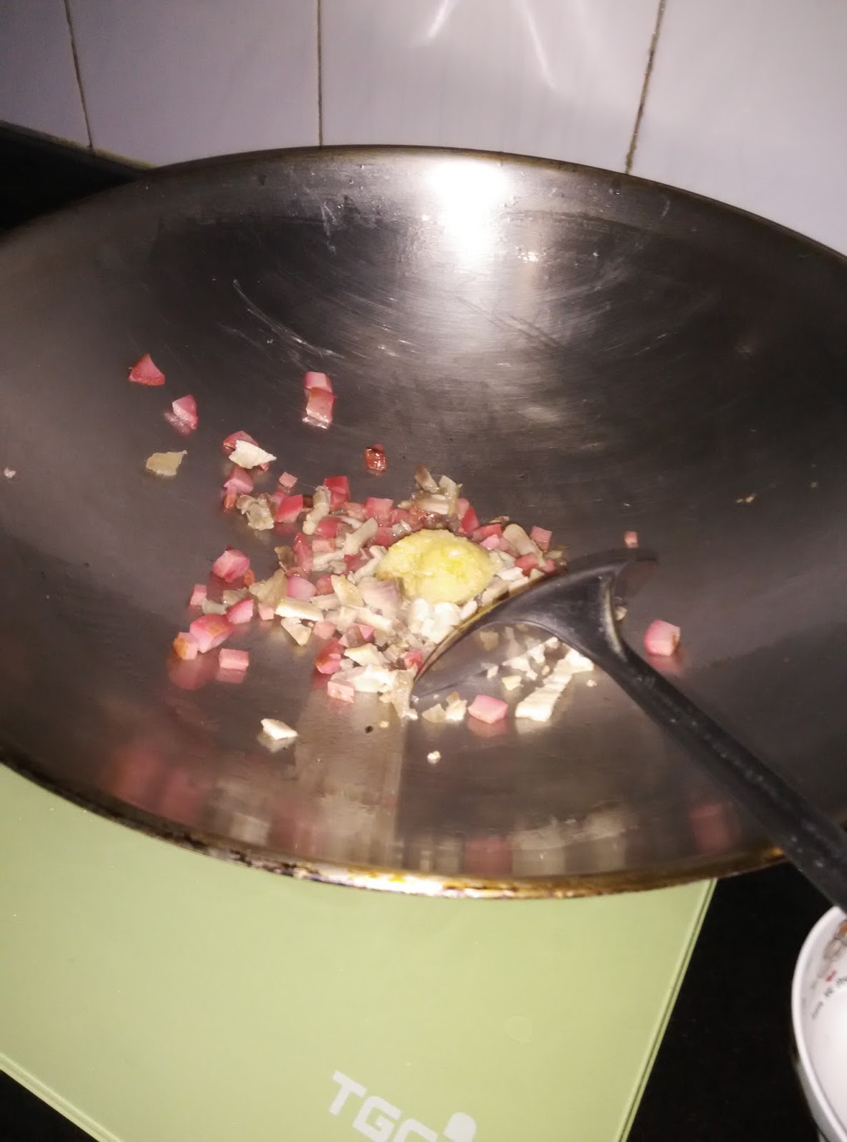 咸肉碎紅腸煮茄子By angelma21咸肉碎紅腸煮茄子編輯: By angelma21預備---分鐘烹調20分鐘總共20分鐘難度1 / 3份量3-4人簡介魚香茄子通常都用肉碎同咸魚好好味,今次我就用食淨咸肉同香腸切碎一樣煮出好味茄子材料 材料:茄子3條,咸肉紅腸切碎一碗,蒜茸1湯匙,酒1湯匙,豆板醬1湯匙,糖1~2湯匙,老抽1湯匙做法1先將茄子切細條後用鹽浸, 先爆香咸肉同紅腸 加入蒜茸 加入豆板醬 炒香後加入茄子 加入老抽同水 蓋上蓋煮5分鐘左右 茄子軟淋試味就搞掂 小貼士茄子切咗先用鹽水浸,煮出來的茄子就會唔會黑哂主菜小炒中式肉類蔬菜相關食譜通菜炒豬肉By 蔬菜統營處 時間: 25 分鐘 | 份量: 3-4人肉片苦瓜炒蛋By 蔬菜統營處 時間: 45 分鐘 | 份量: 3-4人蜜糖豆木耳炒豬頸肉By 玻璃朱 時間: 30 分鐘 | 份量: 3-4人