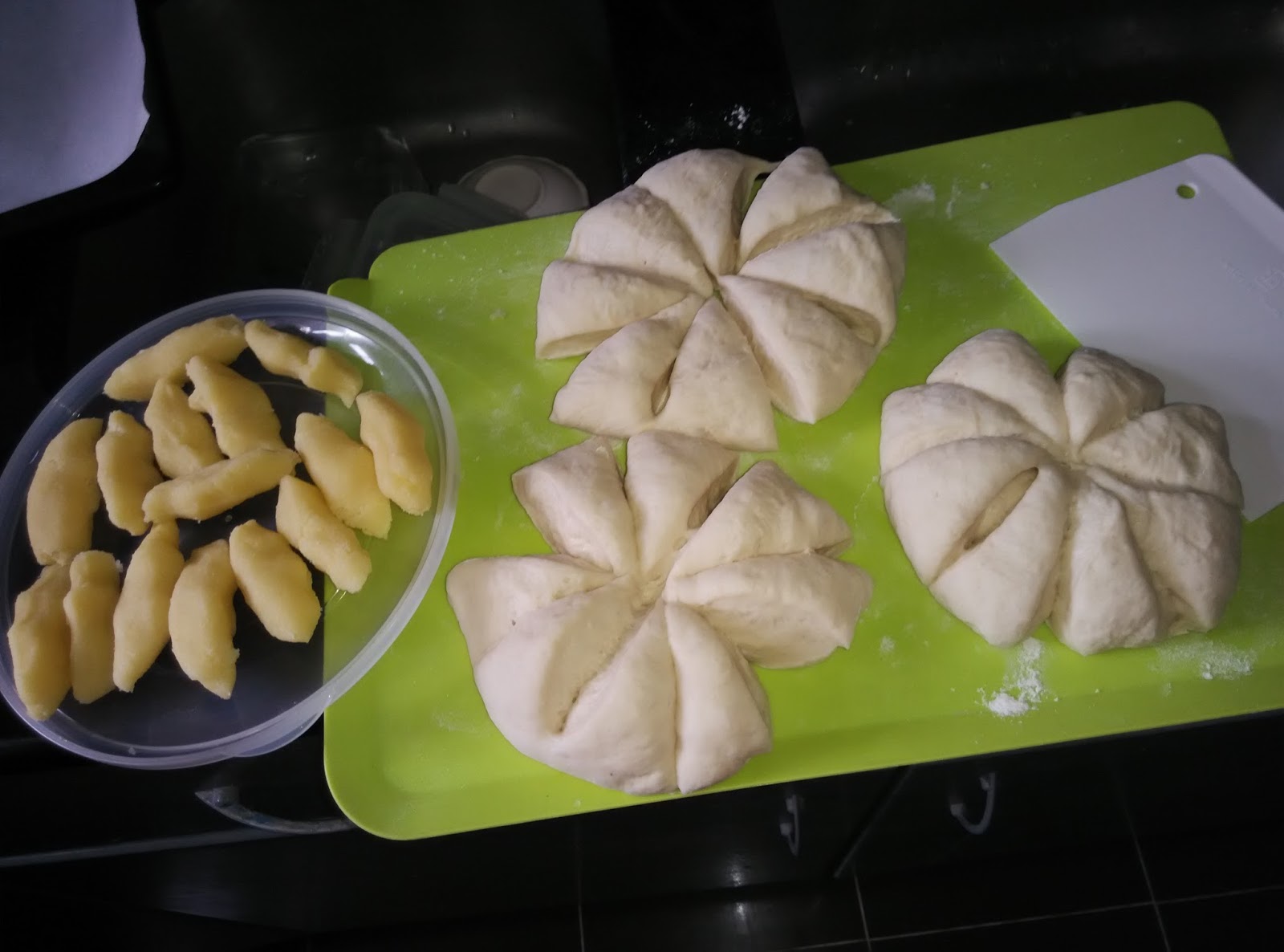 用預拌粉整迷你雞尾包By angelma21用預拌粉整迷你雞尾包編輯: By angelma21預備---分鐘烹調3小時總共3小時難度1 / 3份量3-4人簡介雞尾包喺香港人早餐必食的,加入椰絲更好味材料材料:預拌粉1盒(內有2包麵粉350g,酵母5g, 餡料1包) 水210g, 油30g, 牛油85g(我自己就用少10g), 椰絲1杯面裝飾料:芝麻,麵粉糊(2湯匙麵粉+1茶匙糖同2湯匙水拌勻),蛋汁同糖水做法1先將水同油倒入麵包機,加入麵粉同酵母 按發麵約個半鐘 做餡料,先預備牛油 用熱水坐溶牛油後加入預拌餡料撈勻 加入椰絲再撈勻 整好後放入雪櫃雪 個半鐘後麵團發好 就取出放在枱上先排氣15分鐘 將餡分24份,麵團一樣 將餡料包入麵團將包修長 做好用保鮮紙包住第二發酵 將蛋撈勻,麵糊入袋方便做型 當麵包比之前大2倍就可準備入爐焗 先用蛋汁掃面 加入芝麻喺中間再將麵糊唧2頭 入爐180度焗15分鐘左右出爐時再掃上糖水就搞掂 小貼士做型後一定要大2倍金才去焗就會鬆軟好味道小食烤焗中式粥粉麵飯焗爐相關食譜自家制餐肉包By keiwingwing 時間: 2 小時 45 分鐘 | 份量: 3-4人焗薯蓉貝殼粉By keiwingwing 時間: 45 分鐘 | 份量: 2人龍貓造型麵包By keiwingwing 時間: 3 小時 | 份量: 5-7人