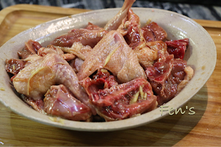 1. 乳鴿去頭、去爪和尾,洗淨抹乾水分後,斬塊。加入所有醃料拌勻,醃2小時。