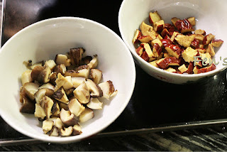 2. 紅棗去核切小粒;香菇泡軟,切小粒。