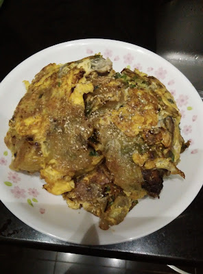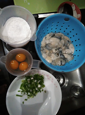 簡單煎蠔餅By angelma21簡單煎蠔餅編輯: By angelma21預備---分鐘烹調35分鐘總共35分鐘難度1 / 3份量3-4人簡介蠔餅做法個個唔同,老公話正中潮州的用番薯粉同鴨蛋,今次就用哩二樣加蠔就做出好味潮式蠔餅材料基本材料: 蠔仔1斤,蕃薯粉200g約杯半,鴨蛋三只,蔥1棵,水半杯調味:鹽半茶匙,糖1茶匙,糊椒粉適量,魚露1湯匙 做法1 蠔仔先用生粉清洗乾淨將鴨蛋打勻蕃薯粉加水撈勻 生蠔洗淨後用滾水拖拖 將蠔,蔥同鹽糖加入番薯粉撈勻放些少油,油一定要熱倒入粉糊見粉糊開始變透明加入一半鴨蛋蛋熟就可返另一邊繼續煎加餘下的鴨蛋煎到金黃就食得 小貼士薯粉一定先用水開了就唔會有粉粒主菜煎炸中式海鮮相關食譜【Cooking TV】煎蠔餅By 靚太Club 時間: 30 分鐘 | 份量: 3-4人【Cooking TV】黃金蝦By 靚太Club 時間: 30 分鐘 | 份量: 3-4人砵酒焗生蠔By Seikobear 時間: 2 小時 | 份量: 2人