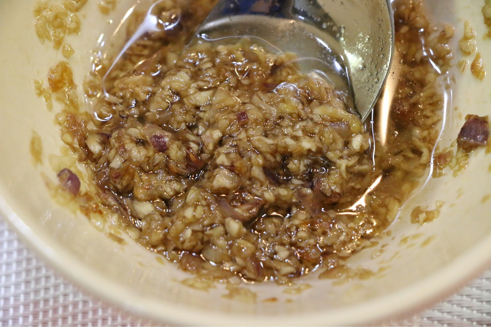 17. 豬手放涼後起肉切小塊,淋入沙薑汁料和少許蒜蓉、辣椒碎拌勻。