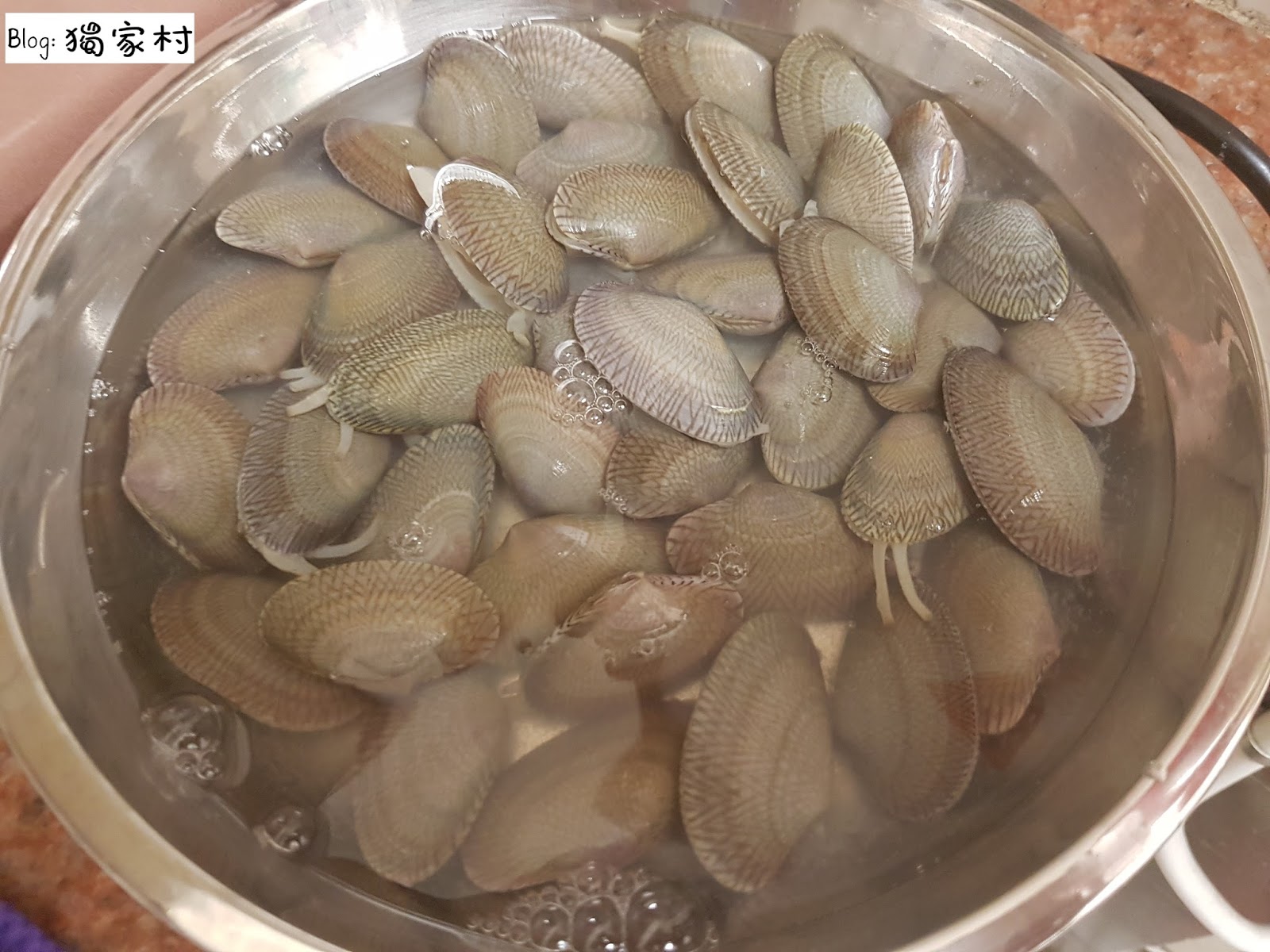 - 蜆放入滾水一分鐘,一開殼立刻撈起,沖沖水