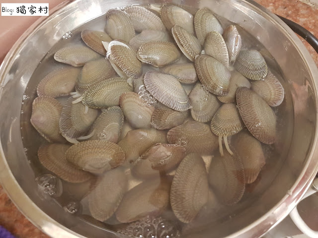 花甲或蜆淺水略浸,待它們完全吐沙。