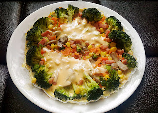 4:西蘭花、火腿、紅蘿白、磨菇、粟米粒適量
