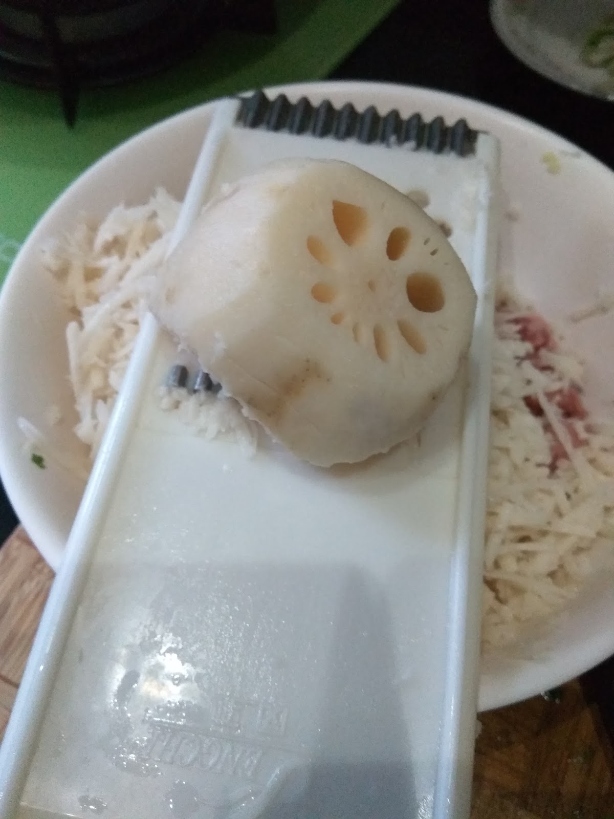 薑蔥蓮藕餅By angelma21薑蔥蓮藕餅編輯: By angelma21預備---分鐘烹調45分鐘總共45分鐘難度1 / 3份量3-4人簡介蓮藕餅做法個個唔同,有啲用魚肉,有啲用豬肉,有啲就二樣,而我今次就用豬肉加薑蔥喜歡的又一個驚喜材料材料:肉碎$10, 蓮藕半斤,蔥2湯匙,薑茸1湯匙調味:半茶匙鹽,2湯匙豉油,糖1湯匙, 栗粉3湯匙, 水2湯匙, 油1湯匙 做法1蓮藕洗淨去皮刨絲將肉碎,蓮藕絲,蔥同薑茸加調味隨栗粉同油外全部先撈勻因蓮藕有濕會同肉撈勻後會見到黏起加生粉撈勻後先加油再撈所有撈勻後可做型唔散就可以去煎煎時因喺肉所以先大火再轉細火蓋上蓋去焗就保証全熟煎到二面金黃就食得小貼士煎時最好用易潔鑊就唔洗太多油,食得健康又好味主菜煎炸中式肉類蔬菜相關食譜蝦醬香煎雞翼By Seikobear 時間: 2 小時 | 份量: 3-4人椒鹽雞翼By akbaby 時間: 1 小時 30 分鐘 | 份量: 3-4人金菇肥牛卷By ccchloe 時間: 30 分鐘 | 份量: 2人