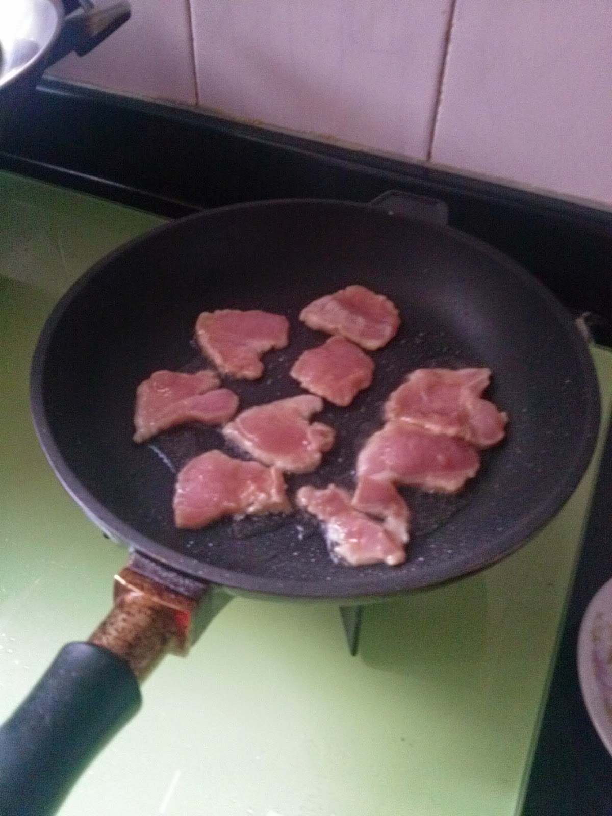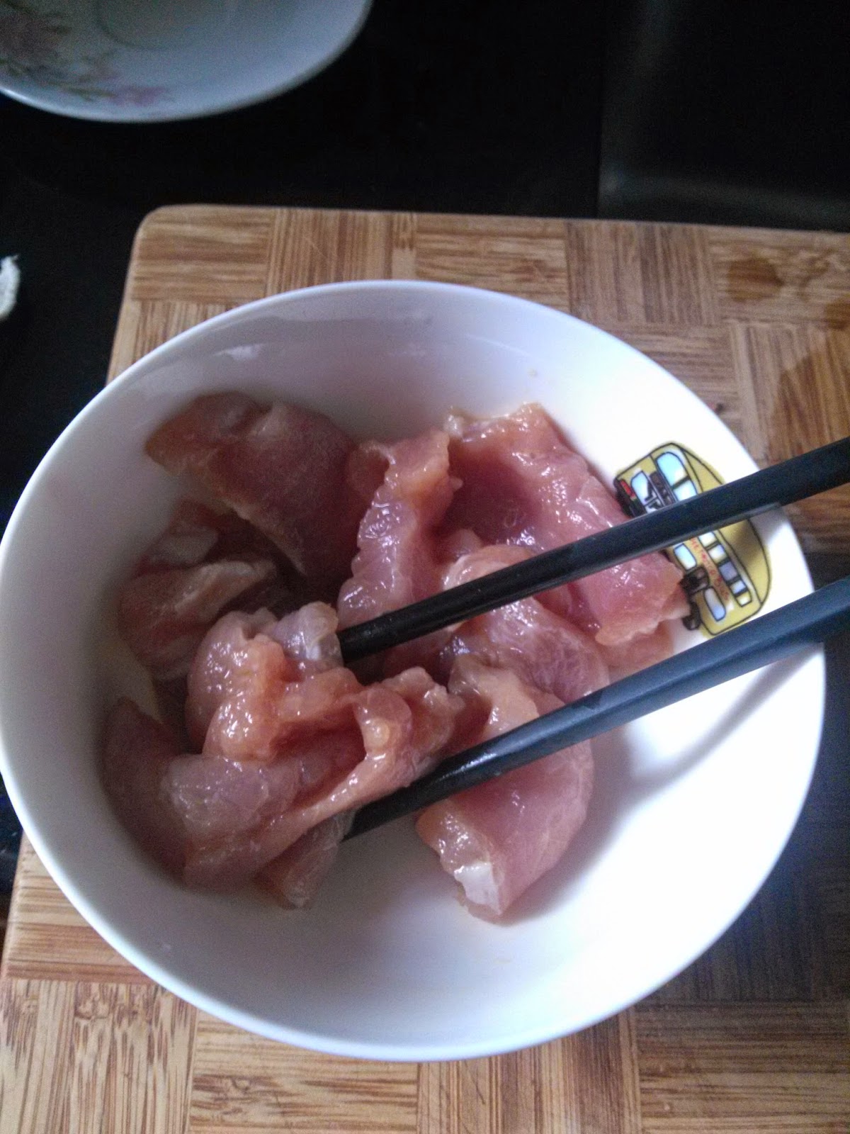先將豬肉洗淨切片後加入豉油糖撈勻
