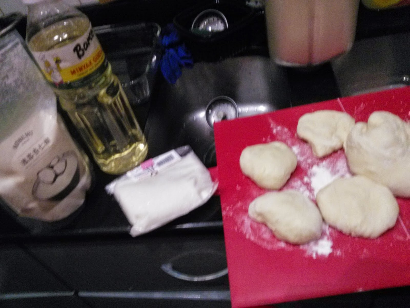 麵粉2.5杯(2杯高粉加半杯底粉), 酵母1茶匙, 牛油30g