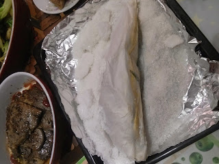 鹽焗薑蔥黃花魚By angelma21鹽焗薑蔥黃花魚編輯: By angelma21PreviousNext預備---分鐘烹調40分鐘總共40分鐘難度1 / 3份量3-4人簡介今晚做左個好簡單鹽焗黃花魚, 非常好味鮮甜多汁, 同大家分享吓材料材料: 黃花魚一條, 薑5-6片, 蔥一棵 粗鹽一包, 油1湯匙, 碭紙同牛油紙各一張做法1先將黃花魚洗淨沫乾用酒搽勻全身內外 2片薑同些少蔥放魚肚入面 先放些蔥在牛油紙面再放魚, 魚面放淨餘的蔥同薑 牛油紙包好條魚 焗盤放上碭紙pop上粗鹽 放上魚再用粗魚密封全條魚 放入焗爐180度25分鐘, 熄爐後多5分鐘左右就食得將鹽拿走打開牛油紙就可享用, 鮮甜多汁主菜烤焗中式海鮮焗爐黃花魚相關食譜焗比目魚扒By EMILY_TSANG 時間: 30 分鐘 | 份量: 2人海鹽烤三文魚柳By 8度海逸酒店 時間: 1 小時 | 份量: 1人“泰” 好味 。鹽焗魚By Yena 時間: 30 分鐘 | 份量: 3-4人