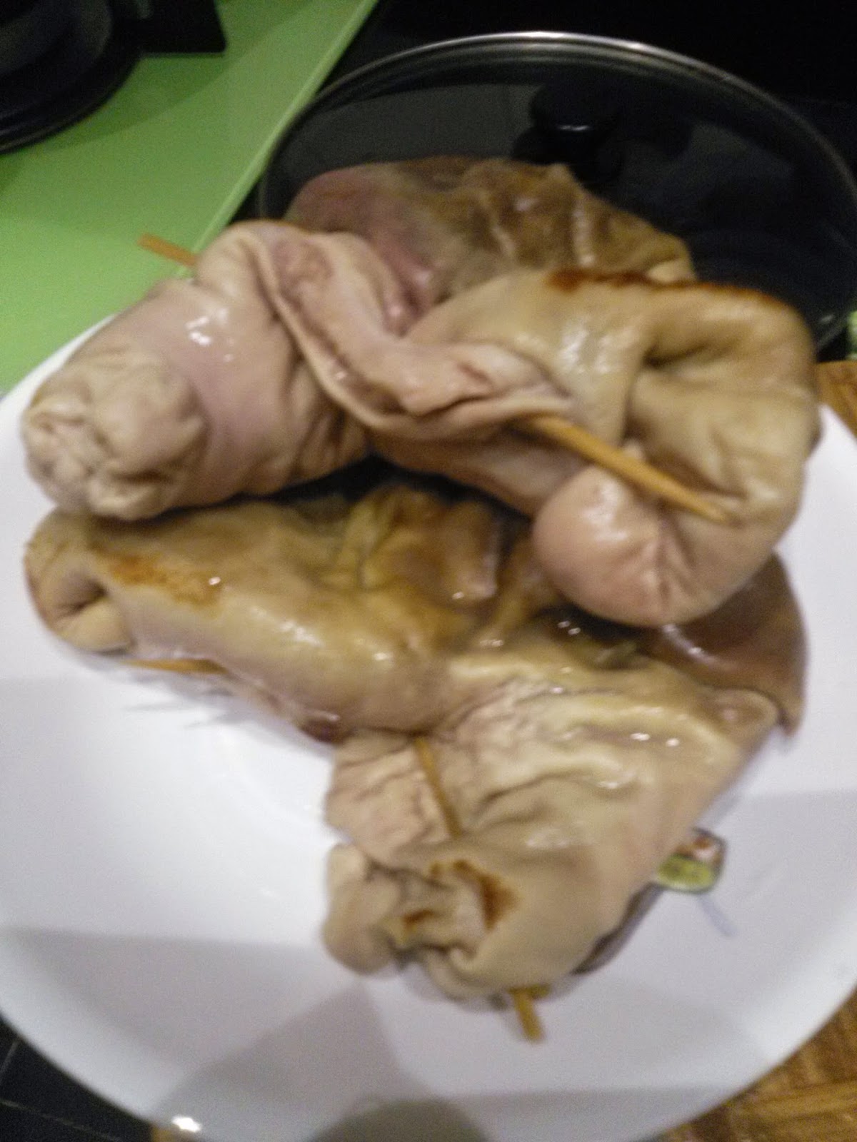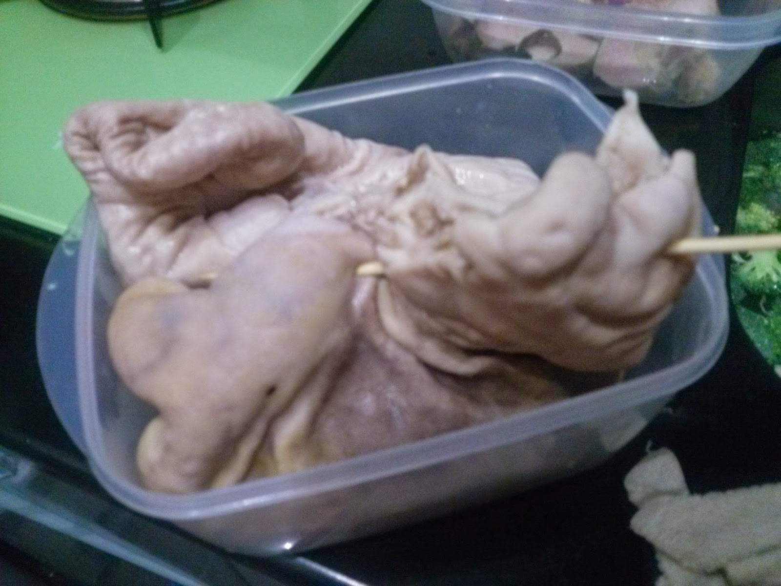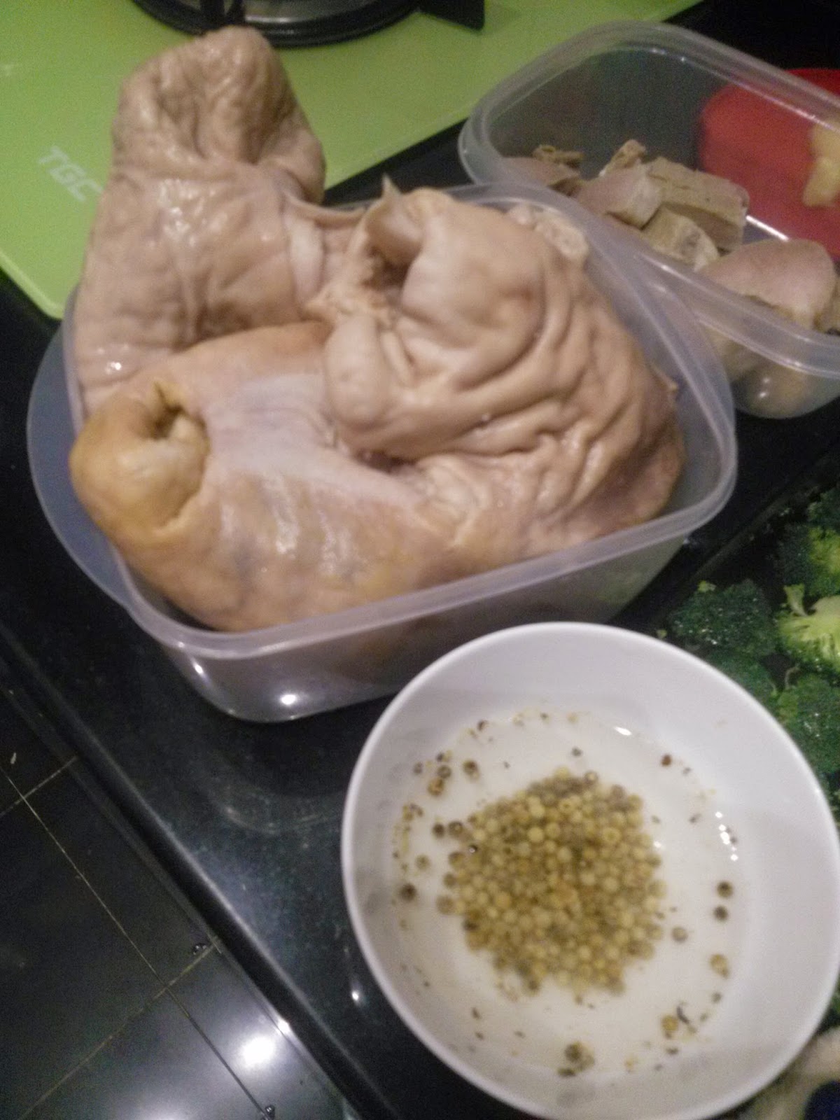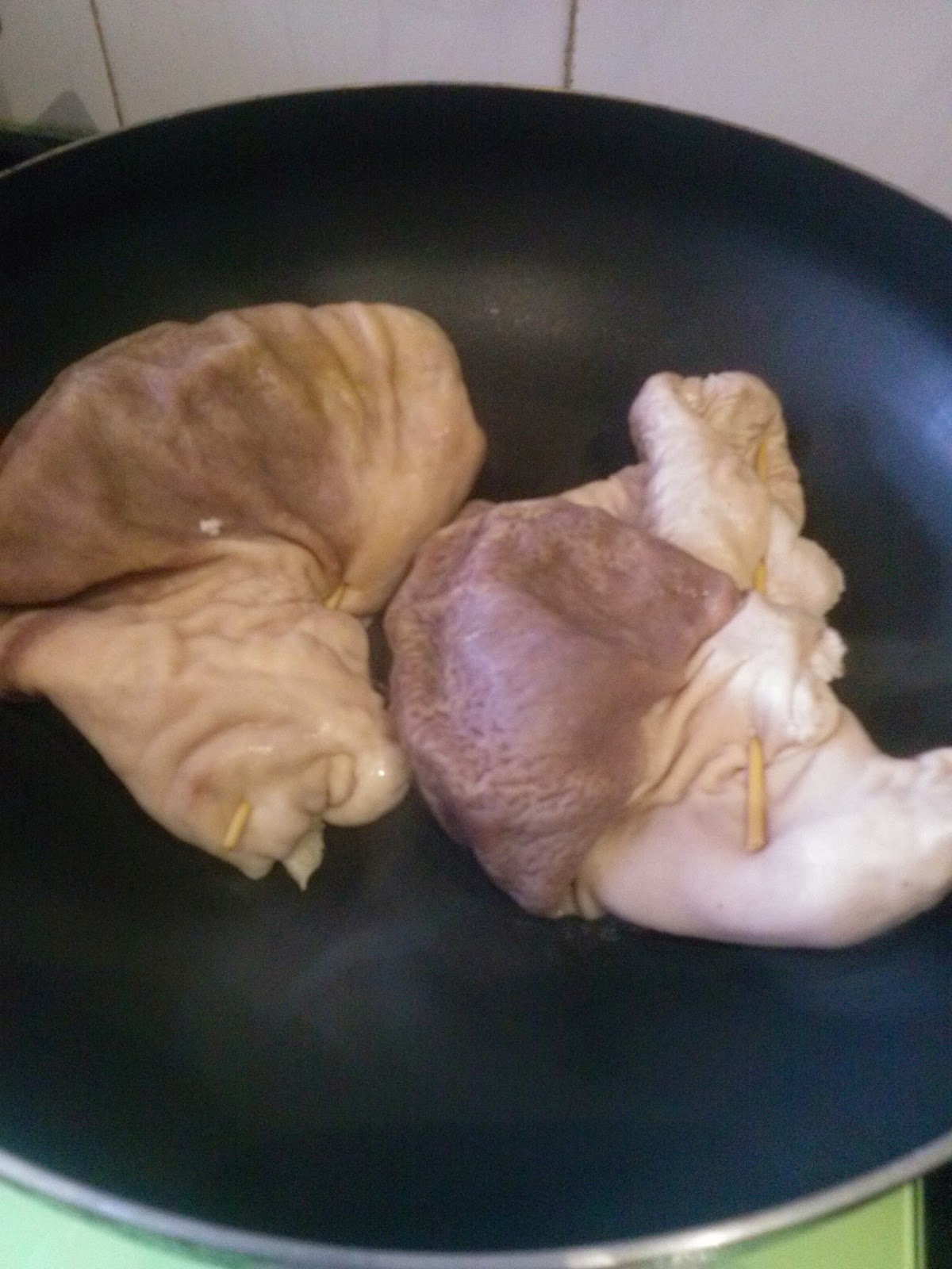 就將d水倒左, 將豬肚返轉入面, 因內肚最多污物同肥膏