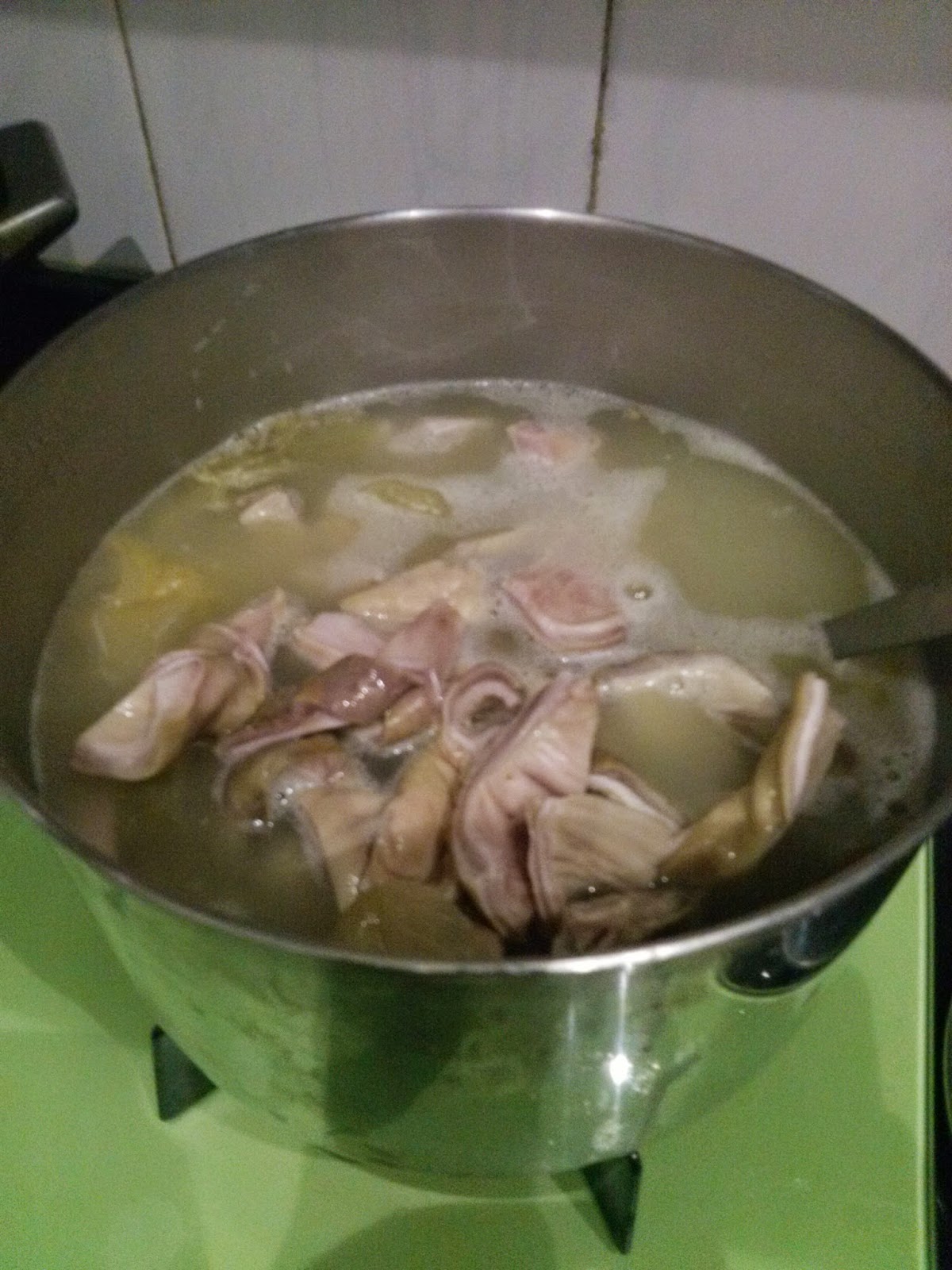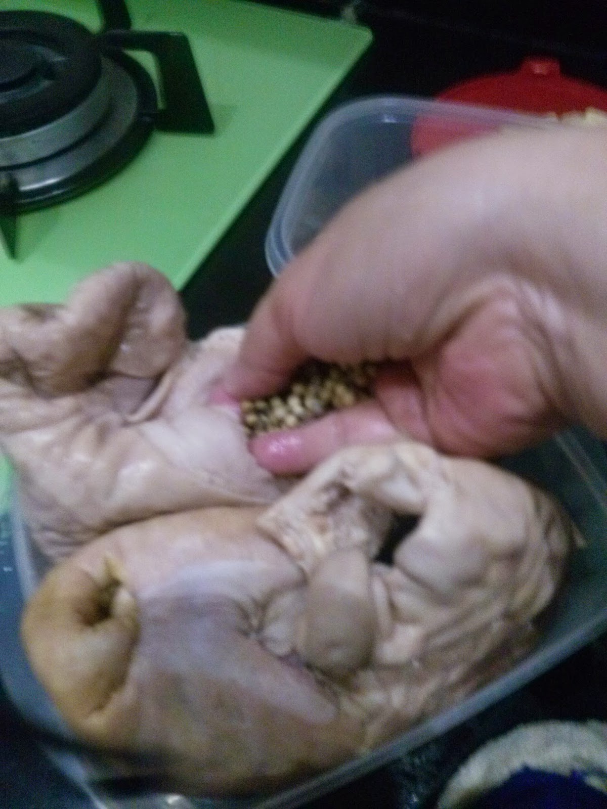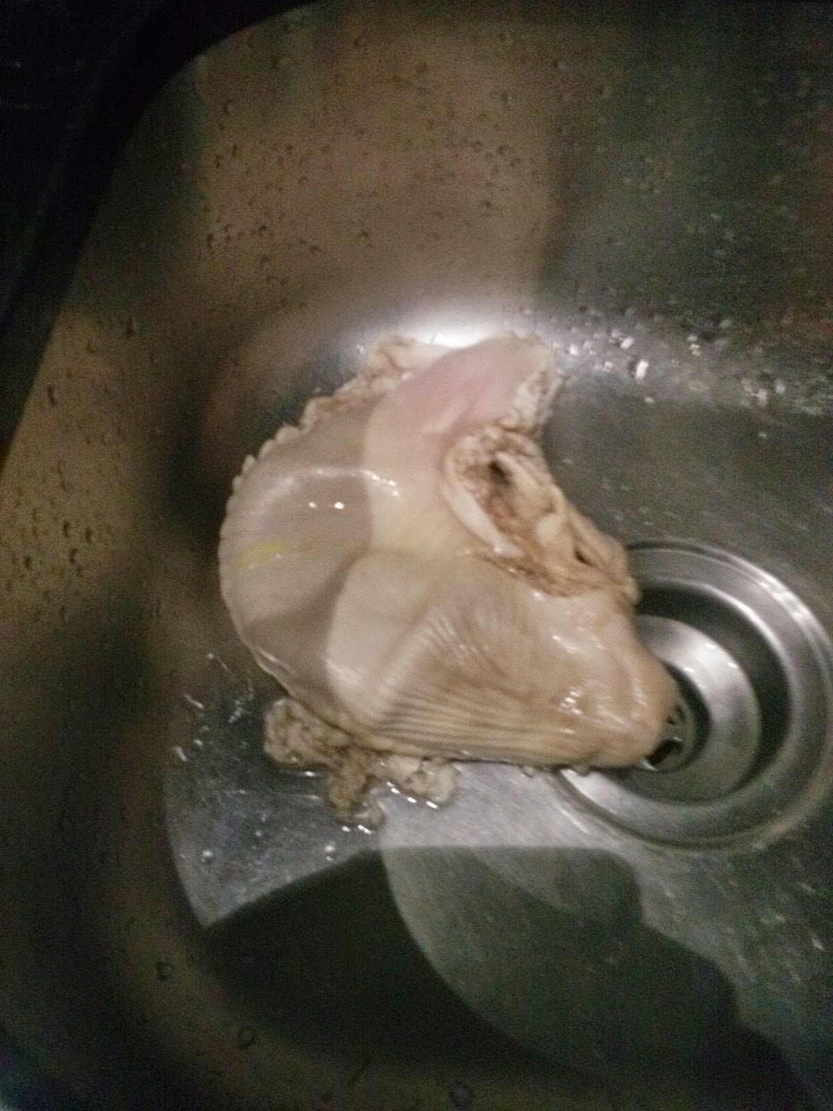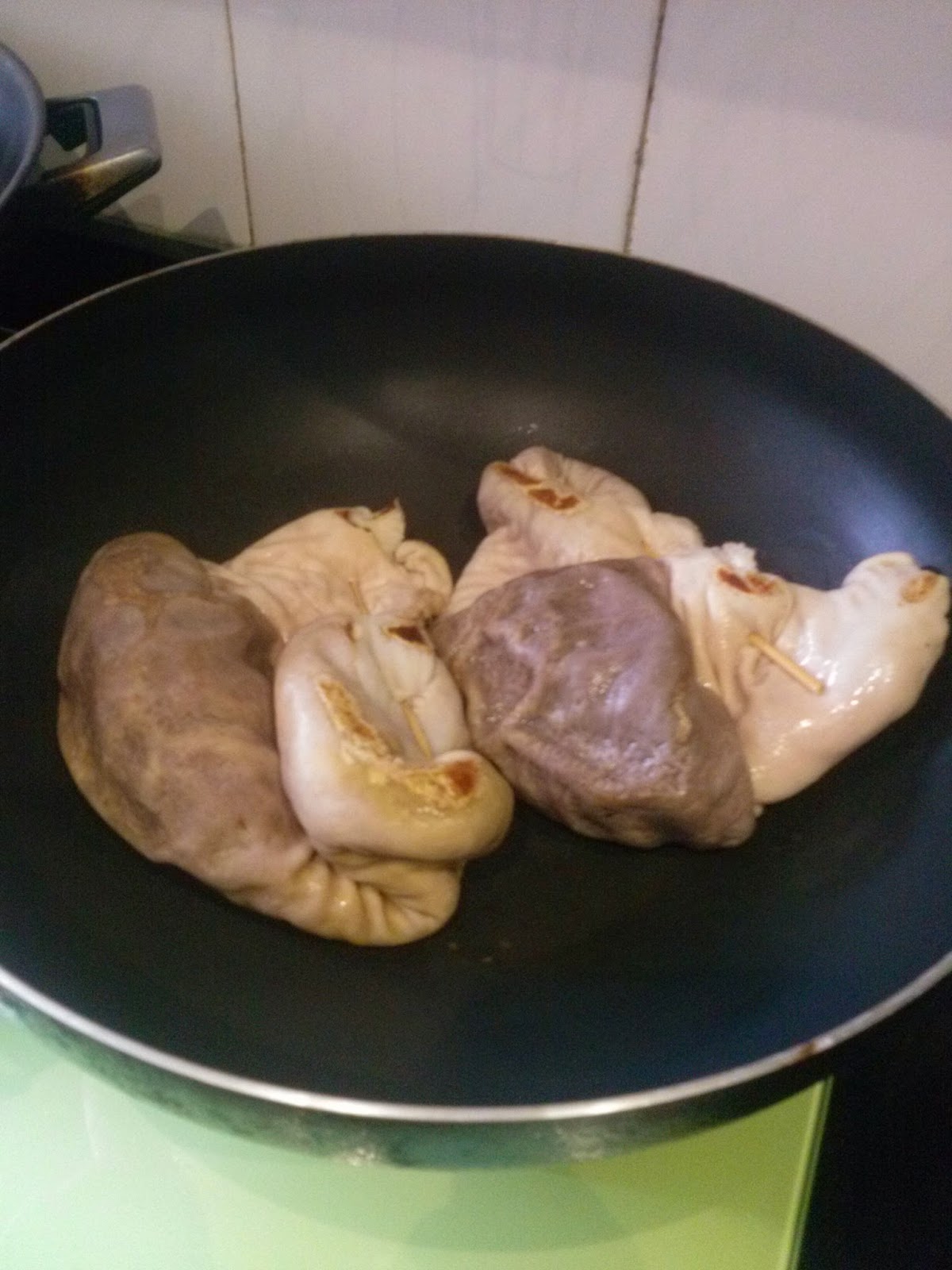 就將d水倒左, 將豬肚返轉入面, 因內肚最多污物同肥膏