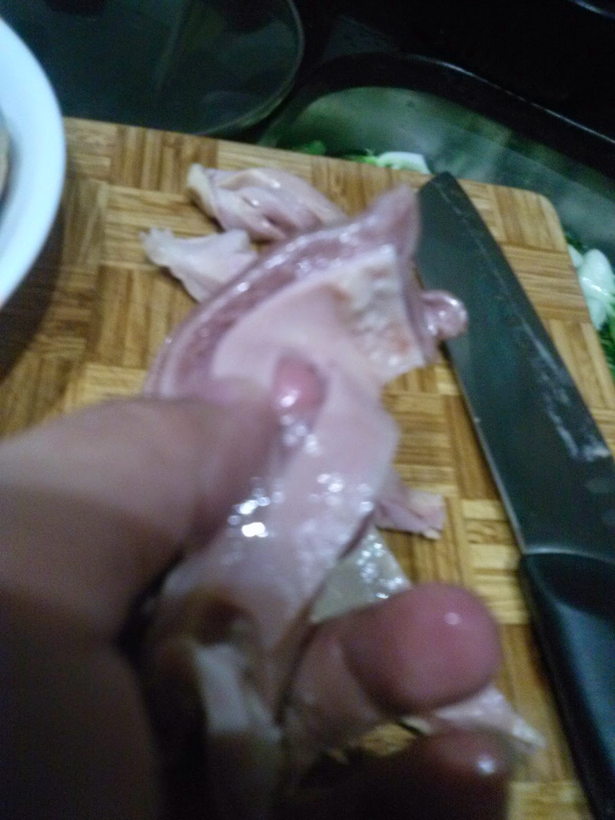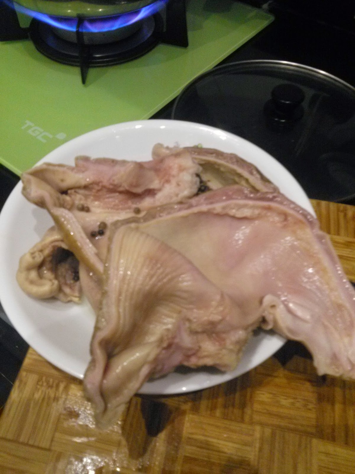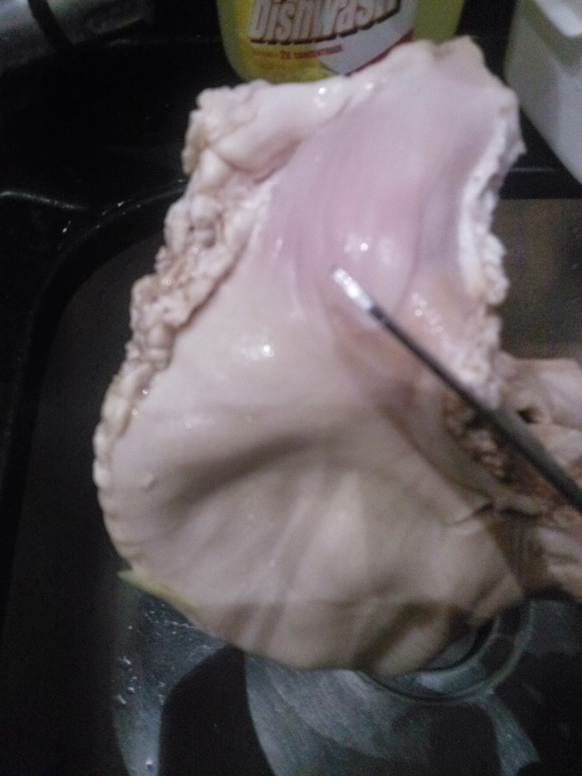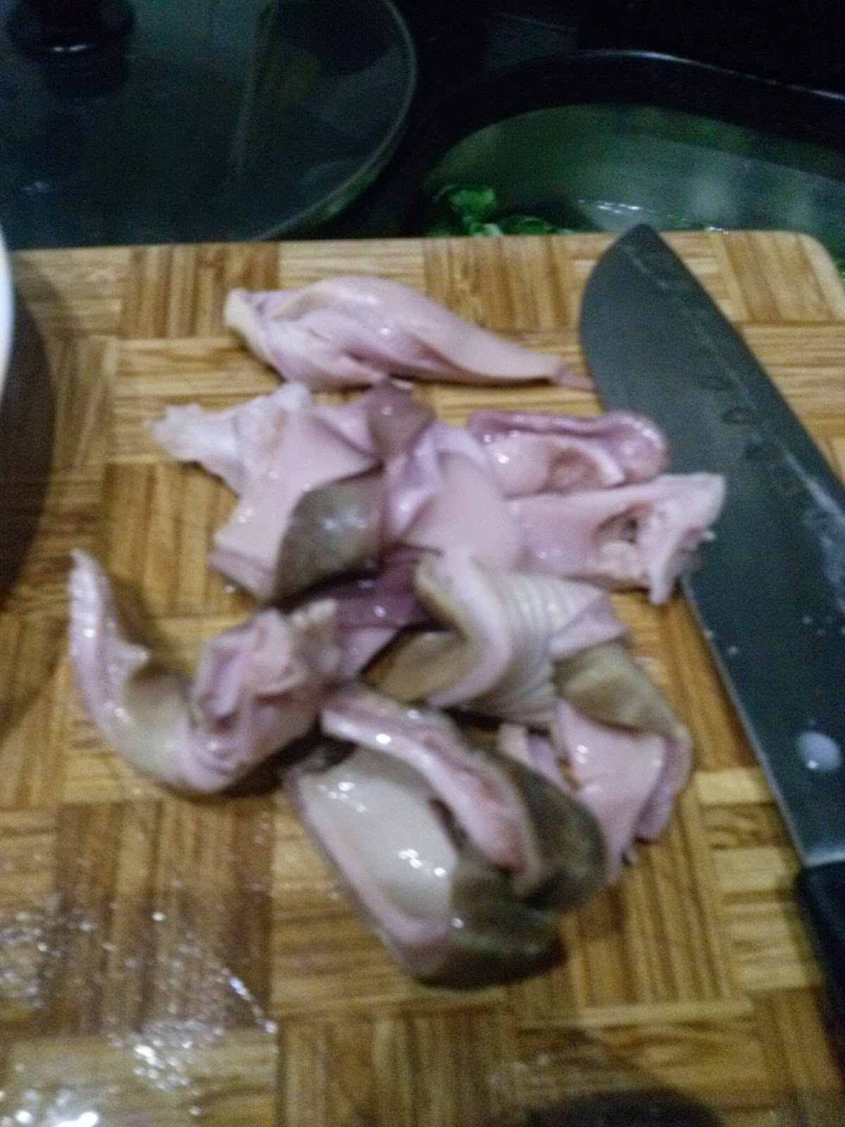 就將d水倒左, 將豬肚返轉入面, 因內肚最多污物同肥膏