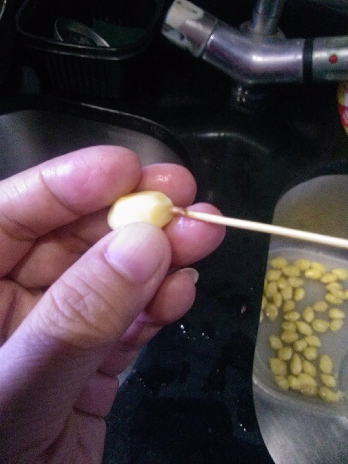 銀杏去芯(通常見到頭頂有黑點就一定有條芯)要去左先唔會苦