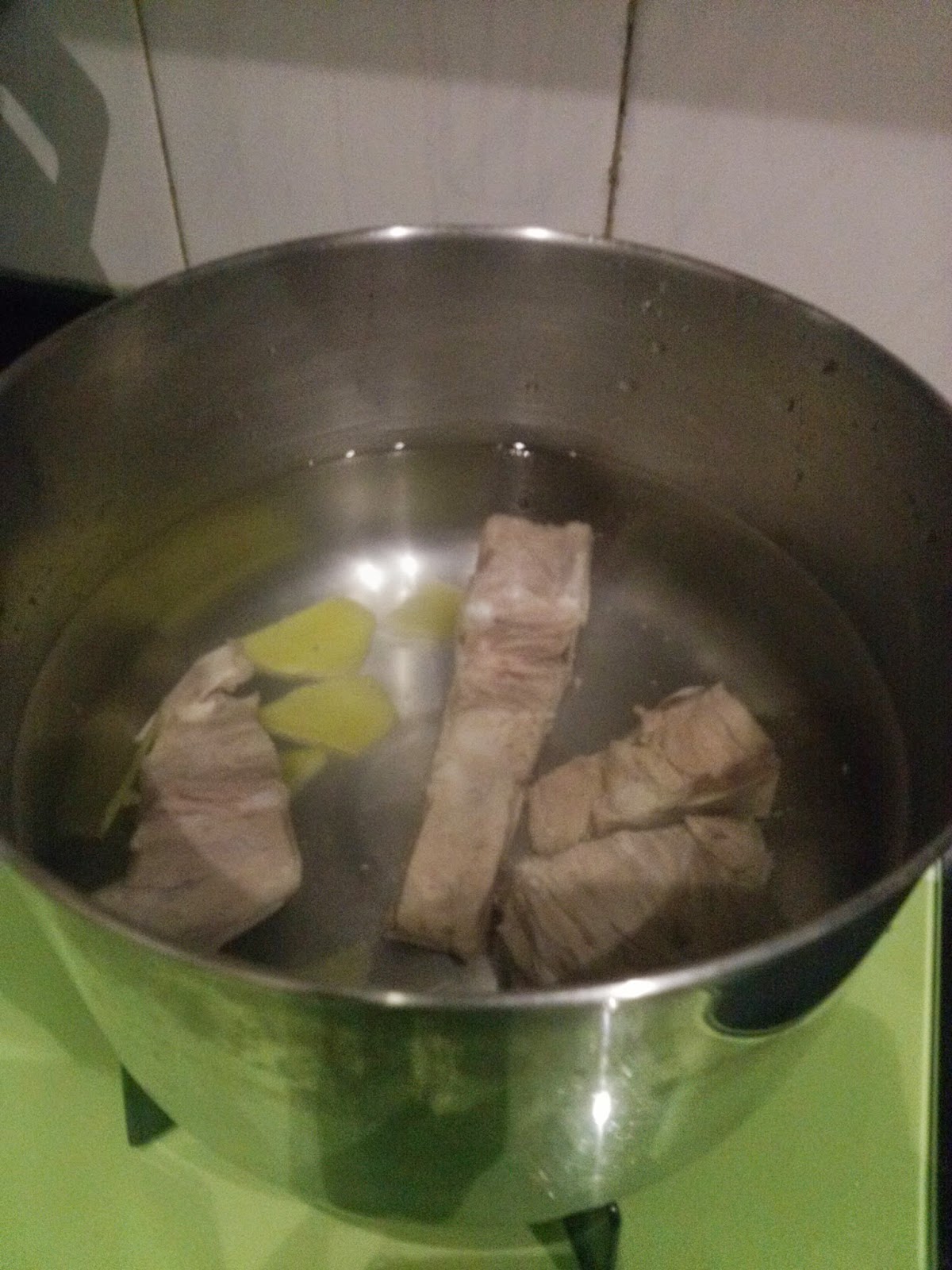 豬骨出左水後就先同薑片凍水一齊煲15分鐘
