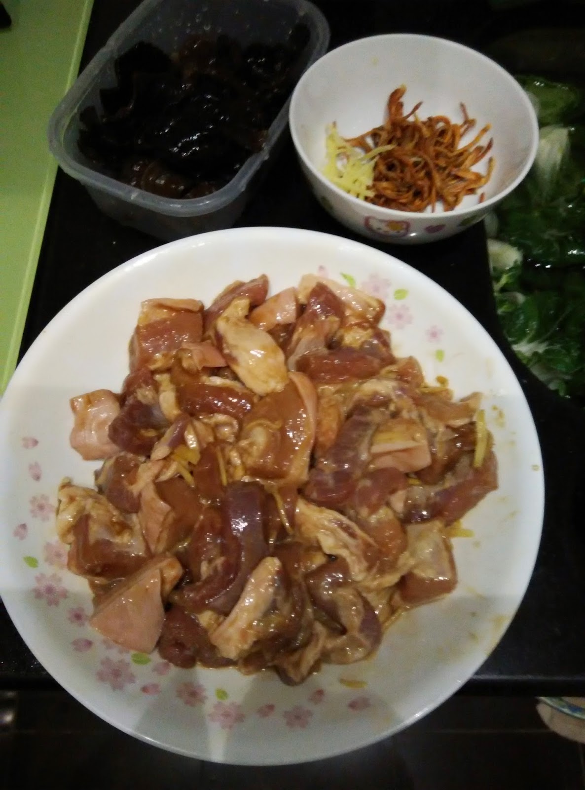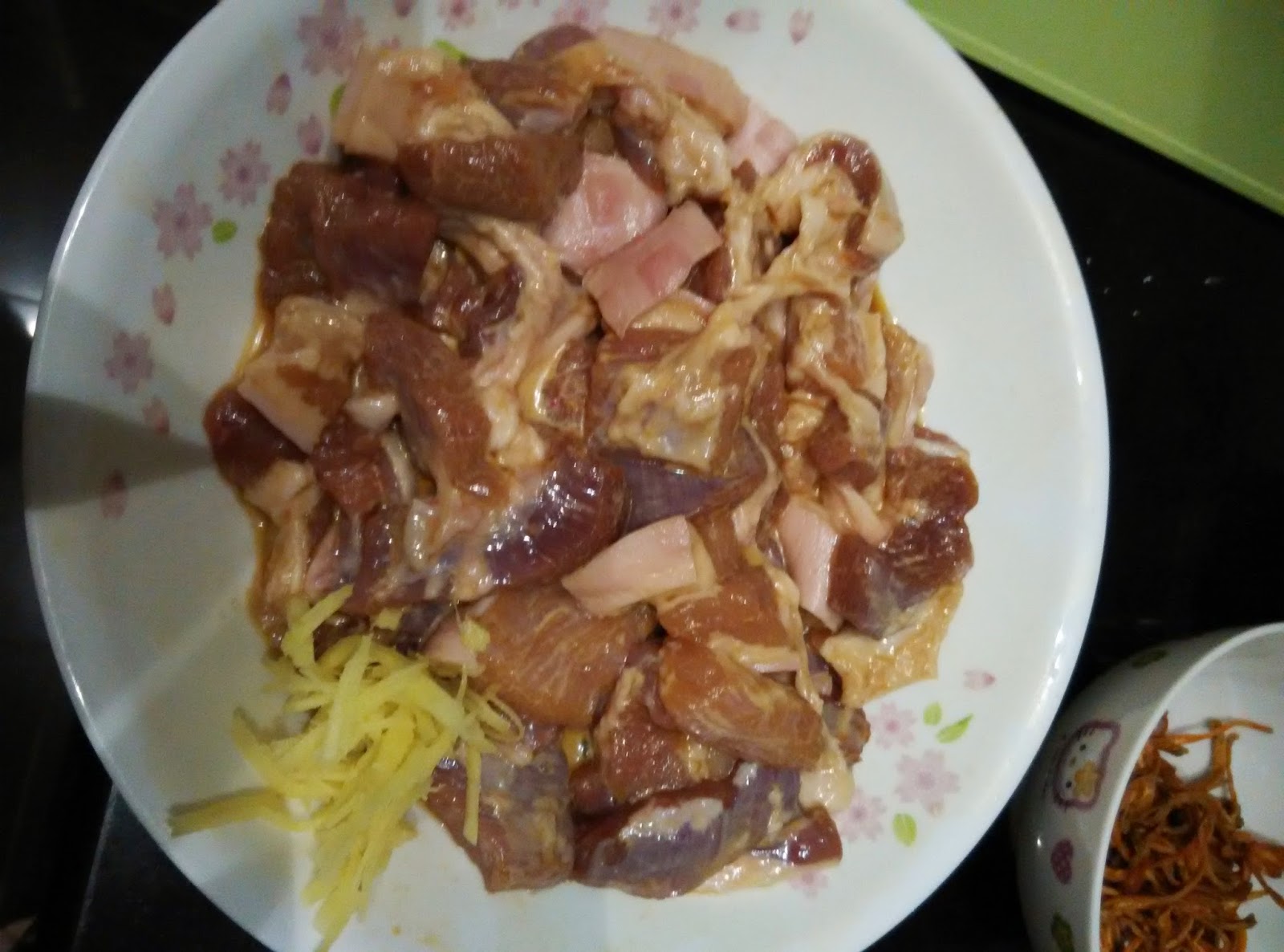 2)腩肉洗淨切細件, 約厚度半cm左右,容易入味同容易熟