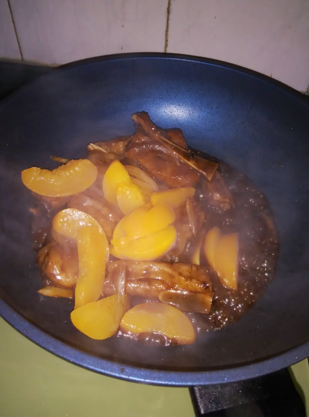 中式水蜜桃金沙骨By angelma21中式水蜜桃金沙骨編輯: By angelma21PreviousNext預備---分鐘烹調40分鐘總共40分鐘難度1 / 3份量3-4人簡介中式牛柳, 中式豬扒大家就食得多, 不如試吓我哩個加左水蜜桃金沙骨更惹味好食材料材料: 金沙骨1.5磅, 洋蔥半只, 水蜜桃3件, 薑片4-6片, 青椒1只, 蔥些少汁料: 茄汁2湯匙, 鎮江醋2湯匙, 片糖半塊, 水1杯做法1金沙骨洗淨沬乾先用1/4茶匙撈勻, 洋蔥, 青椒洗淨切絲, 水蜜桃切細件 先用些少油爆香薑片 加入金沙骨先大火煎香2邊 煎好後加入汁料炒勻等骨吸味 加入水 蓋上蓋煮15分鐘左右 骨容易插入筷子就熟 先回碟 洗淨鑊加入洋蔥青椒爆香 洋蔥金黃有香味 就先加回汁料煮煮試味 再加回骨炒到差不多收汁 加入水蜜桃 就熄火炒勻 上碟加入蔥就搞掂小貼士骨洗淨先加些少鹽煮出來就入味d 用大火煎香骨2邊只想炆煮時肉汁唔會容易溜失 加水一定用暖水就唔會令到立即降溫, 易潔鑊都耐用d主菜煎炸小炒炆燉中式肉類相關食譜簡易晚餐 - 糖醋排骨By kinkieddie 時間: 1 小時 | 份量: 3-4人【Cooking TV】蒜片欖角蜜汁雞翼By 靚太Club 時間: 30 分鐘 | 份量: 3-4人孜然洋蔥雞煲By Seikobear 時間: 1 小時 30 分鐘 | 份量: 3-4人