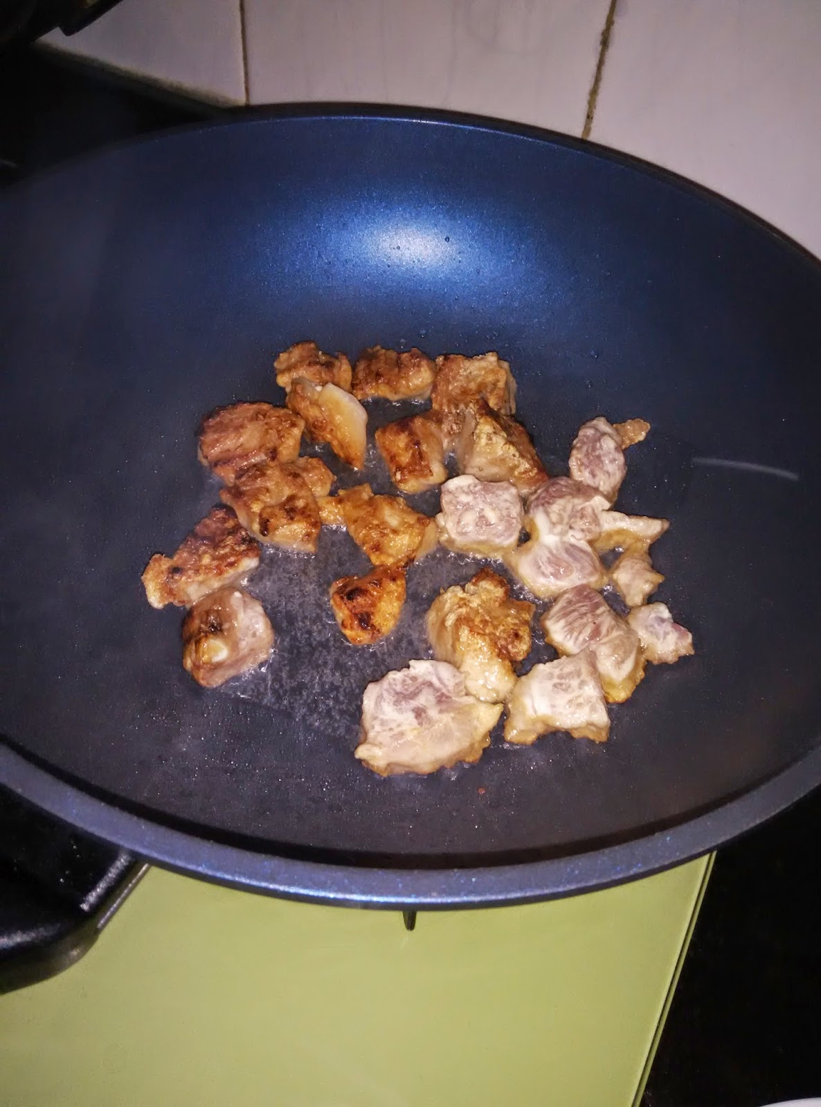 芝麻醬沙拉骨By angelma21芝麻醬沙拉骨編輯: By angelma21預備---分鐘烹調30分鐘總共30分鐘難度1 / 3份量3-4人簡介生炒骨大家就食得多, 不如試吓哩個芝麻醬沙拉骨好香芝麻味而且酸酸地幾惹味材料材料: 排骨1磅, 洋蔥半個, 薯仔1只, 青椒1只醃排骨料: 豉油1湯匙, 糖1茶匙, 水1茶匙, 生粉3湯匙, 汁料: 芝麻醬2湯匙, 沙律醬2湯匙, 水4湯匙做法1 排骨洗淨切細, 最好大細差唔多就容易熟 先將豉油, 糖同水加入排骨撈勻放一邊 薯仔去皮洗淨切細粒, 洋蔥同青椒洗淨切細, 汁料用水先開勻煎排骨前先加入生粉撈勻 放入排骨先大火煎2邊 再轉細火煎到排骨熟 煎好排骨先回碟加入薯仔煎熟 排骨用筷子容易插入就熟 薯仔都喺用筷子容易插入就熟 將洋蔥, 青椒爆香 洋蔥有香味同金黃就加入醬汁, 一定要轉細火 炒勻汁料試味 加入排骨 熄火撈勻就搞掂 可加入蔥小貼士煎排骨同薯仔時先大火再轉細火先容易熟 撈醬時可加多些少水就容易撈得勻主菜煎炸小炒中式肉類相關食譜【Cooking TV】蒜片欖角蜜汁雞翼By 靚太Club 時間: 30 分鐘 | 份量: 3-4人【Cooking TV】柚子蜜香骨By 靚太Club 時間: 3 小時 20 分鐘 | 份量: 3-4人【Cooking TV】燒汁豬腩肉豆腐卷By 靚太Club 時間: 15 分鐘 | 份量: 3-4人