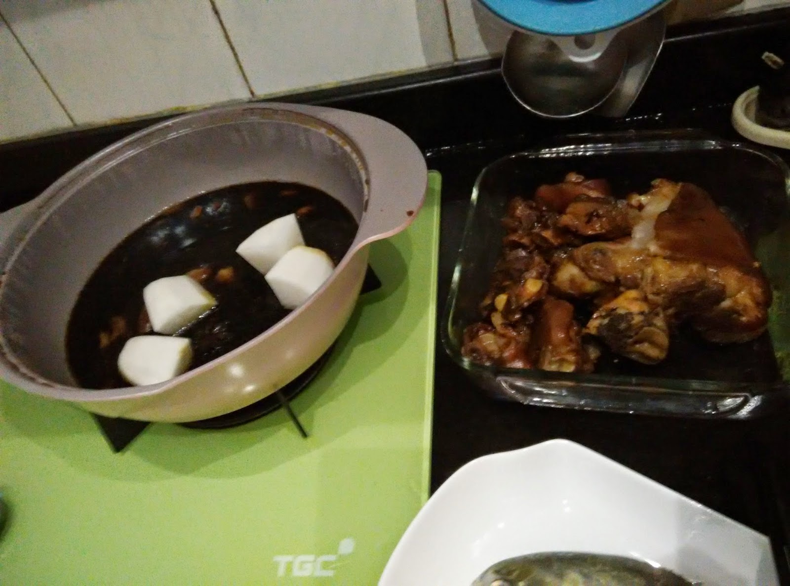 炆完豬手先回碟用回原本的汁就可以炆淋蘿蔔就唔需要加水