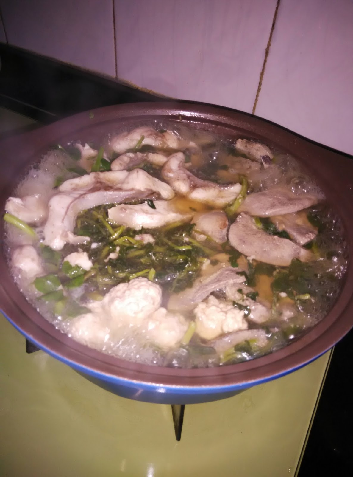 豬潤肉丸魚腩滾西洋菜By angelma21豬潤肉丸魚腩滾西洋菜編輯: By angelma21預備---分鐘烹調20分鐘總共20分鐘難度1 / 3份量3-4人簡介有時想食得清d, 又有魚, 肉菜不如試吓哩個簡單滾西洋菜湯材料材料:西洋菜2扎,豬潤1件,魚腩1件,豬肉半碗, 薑片5-6片魚調味:鹽1/4茶匙,糖半茶匙,糊椒粉半茶匙豬潤調味: 薑汁1湯匙,酒半茶匙,豉油1湯匙,糖1茶匙做法1先將魚洗淨切細件先加醃料撈勻 豬潤洗淨切細件先加入薑汁撈勻 再加入酒,豉油同糖撈勻 豬肉沖洗後加豉油,糖,水,同生粉撈勻後整成丸 先將薑同水㷛滾 滾起後先加入肉丸 再將菜分幾次加入 全部菜煮加入後 就將魚同豬潤加入 蓋上蓋煮5-10分鐘左右 魚同豬潤都熟就加鹽試味就搞掂 小貼士魚腩加入糊椒粉撈一撈就唔會有魚腥 豬潤洗淨沬乾水先加入薑汁撈一撈煮出來就唔會好好味主菜煲中式肉類蔬菜相關食譜魚香茄子煲By BigDayRM 時間: 30 分鐘 | 份量: 2人冬瓜粒湯飯By BigDayRM 時間: 45 分鐘 | 份量: 2人番茄蘿蔔湯By Sindy914 時間: 30 分鐘 | 份量: 2人